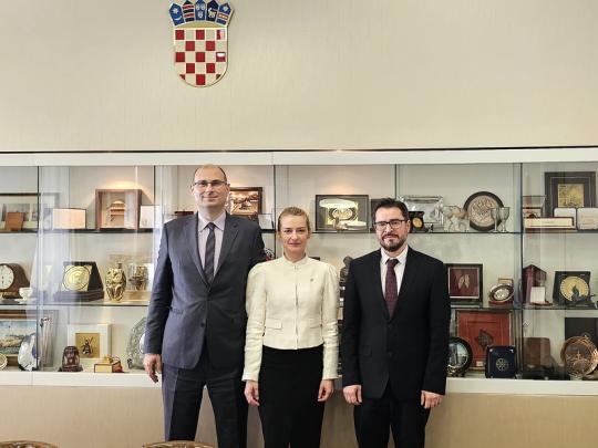 17 travnja 2026. - Predsjednik Suda, prof. Frane Staničić, primio je danas delegaciju Centralno-europske akademije Sveučilišta u Miškolcu (Miskolci Egyetem Közép-európai Akadémia), koju su činili prof. dr. János Ede Szilágyi, strateški direktor Akademije i dr. Katarzyna Zombory, direktorica za istraživanja. Na sastanku su predstavljena najnovija znanstvena postignuća Akademije te se razgovaralo i o mogućoj znanstvenoj i stručnoj suradnji.