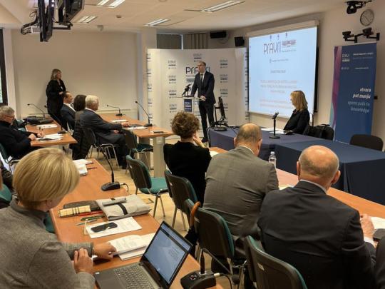 21. studenoga 2025. - predsjednik Ustavnog suda, prof. dr. sc. Frane Staničić, danas se uvodno obratio sudionicima znanstvenog skupa koji je na temu: "Utjecaj Konvencije za zaštitu ljudskih prava i temeljnih sloboda na hrvatski pravni poredak" održan u Rijeci. Organizator, Pravni fakultet u Rijeci, ove je godine fokus usmjerio na zaštitu osjetljivih skupina i ranjivih pojedinaca. Predsjednik je s tim u vezi, među ostalim, naglasio visoku senzibiliziranost Ustavnog suda u odnosu na zaštitu prava upravo te skupine pojedinaca i osvrnuo se na ulogu Suda u razvoju standarada te ustavnosudske zaštite i njihovom usklađivanju sa standardima Europske konvencije za zaštitu ljudskih prava. Među uglednim govornicima izlagali su i suci Ustavnog suda: izv. prof. Maša Marochini Zrinski govorila je o ustavnosudskoj praksi u odnosu na sprječavanje sekundarne viktimizacije ranjivih pojedinaca; sudac dr. sc. Miroslav Šeparović, glavna tajnica Sanja Trgovac i bivša sutkinja dr. sc. Snježana Bagić izlagali su o zaštiti maloljetnika u istražnom zatvoru, dok je sudac Andrej Abramović obradio temu "Međuodnos članaka 8. i 10. Konvencije u medijskim predmetima - ranjivo društvo i žrtvovani pojedinac". Pozdravne riječi sudionicima uputili su i prof. dr. sc. Dario Đerđa, dekan Pravnog fakulteta u Rijeci, prof. dr. sc. Davor Vašiček, v.d. rektora Sveučilišta u Rijeci te dr. sc. Sanja Grbić, voditeljica Projekta "Postojeća antropogena zaštita konvencijskih prava kao chilling effect", u okviru kojeg je ovaj znanstveni skup i održan.